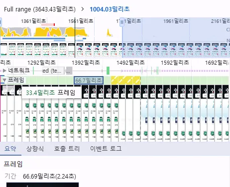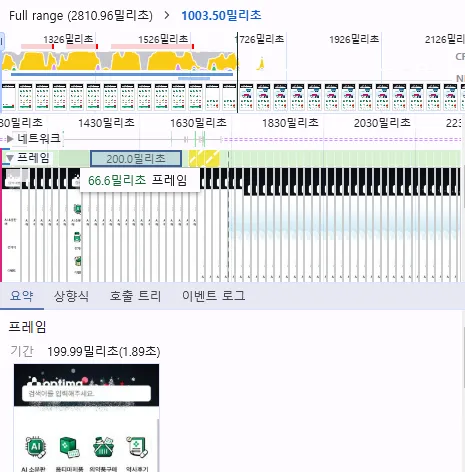 [ FPS = 1000 / 프레임 렌더링 시간(밀리초) ]를 기준으로 개선 전은 5FPS, 개선 후는 15FPS로 개선됨.